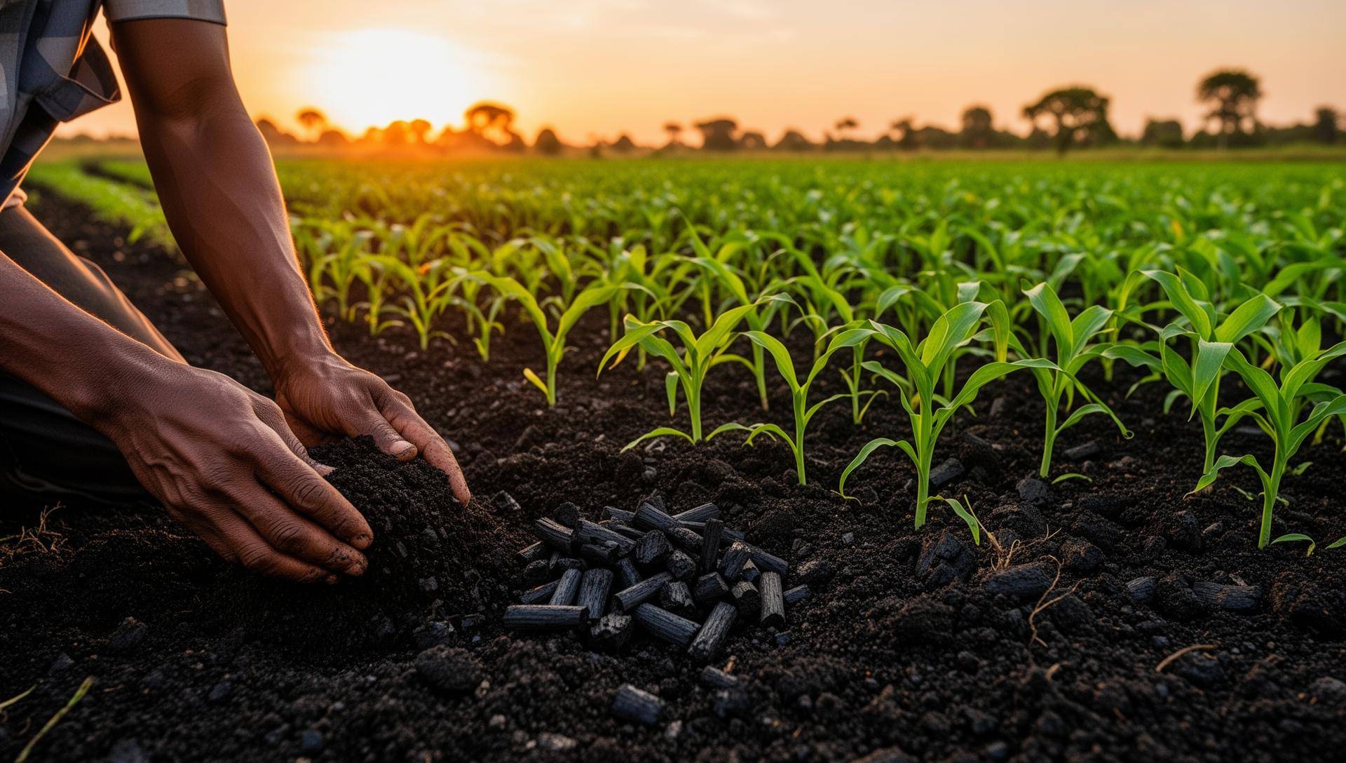 Biochar enhances soil fertility, improves water retention, increases crop productivity, and locks carbon safely into the ground for long-term climate benefit.